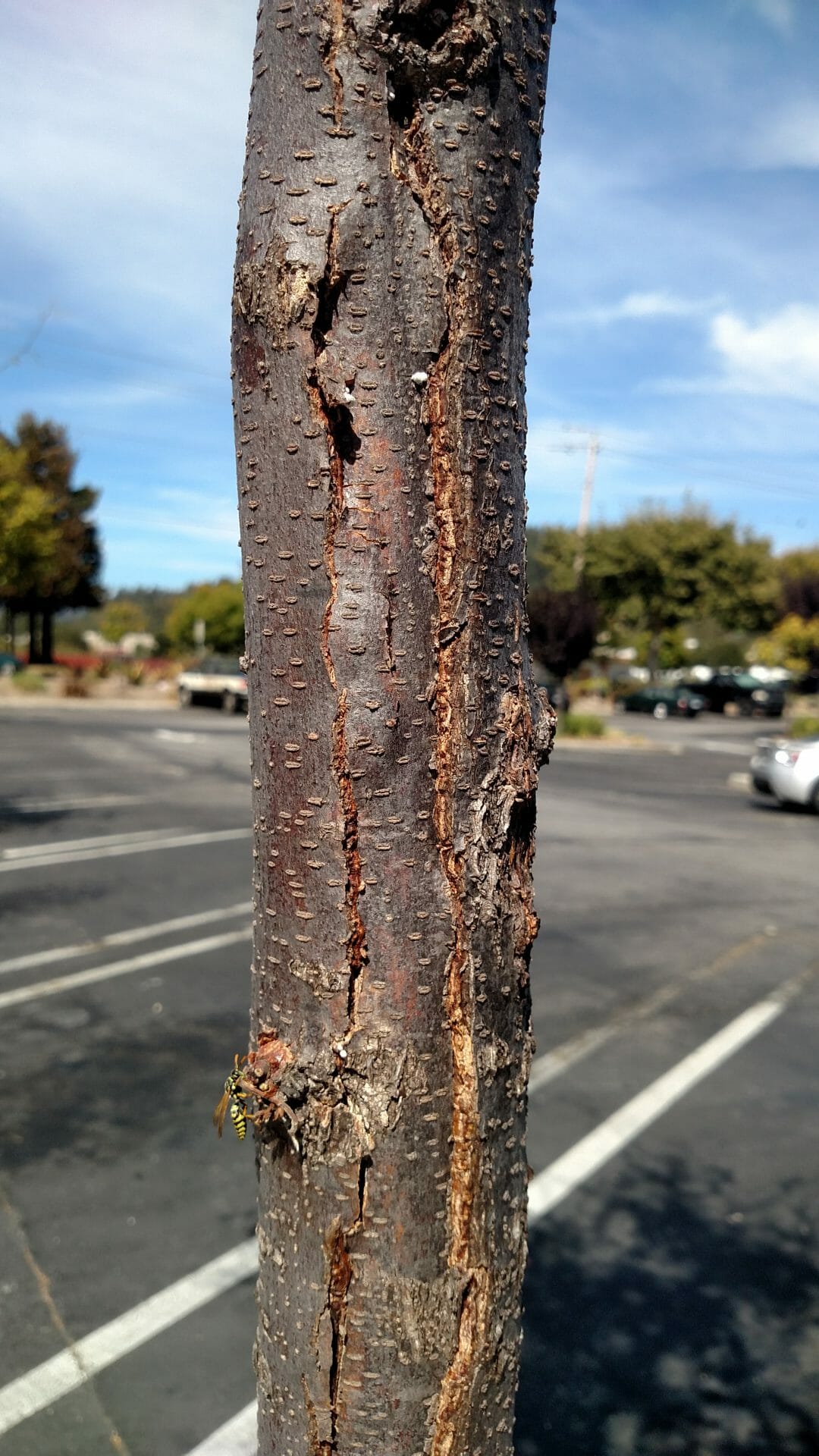 Image Gallery Closeup of Aphids (dead) on bay laurel Dead aphids on underside of bay laurel leaf in Santa Cruz CA Thrips damage to maple in Santa Cruz Milkweed plant with sooty mold on leaves due to aphid infstation Golden aphids Arborvitae aphid on Monterey Cypress Arborvitae aphid on Monterey Cypress Locust tree in severe decline due to unfavorable growing conditions and overpruning Declining honeylocust tree i Scotts Valley Lesions on parking lot tree due to sunburn Sunburn on south side of parking lot tree